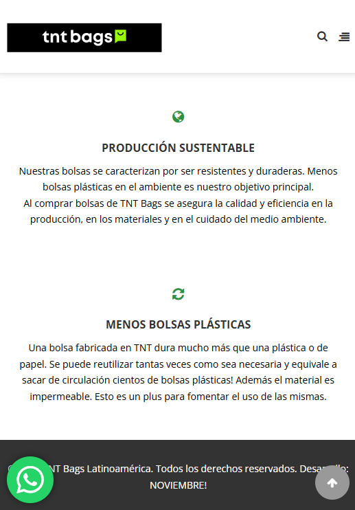 Tnt Bags es una marca que circula por las calles de todo el país y también de Perú. Es una empresa líder en fabricación de bolsas de tela tnt que tiene cientos de marcas impresas dentro de su portfolio. Cada vez que pidas una bolsa reciclable, podrás ver en algún lugar de la misma este sitio :